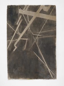 Lawrence & Tashkova plays with subcultures and movements by delocalizing sounds, objects, clothes or movements. The paintings are on unstretched and unprepped canvases – something that has often signified protest art. Here the visual history can be traced back to Russian Revolutionary art and posters from early 20th century. The overlap is not only in form but also subject matter. Take El Lissitzky’s Prouns for example – the inspiration behind the work was drawn from architecture rather than art history itself, in search for novelty. Lawrence & Tashkova carries a similar agenda of paraphrasing based on a variety of references, informed by the contemporary metropolitan reality.