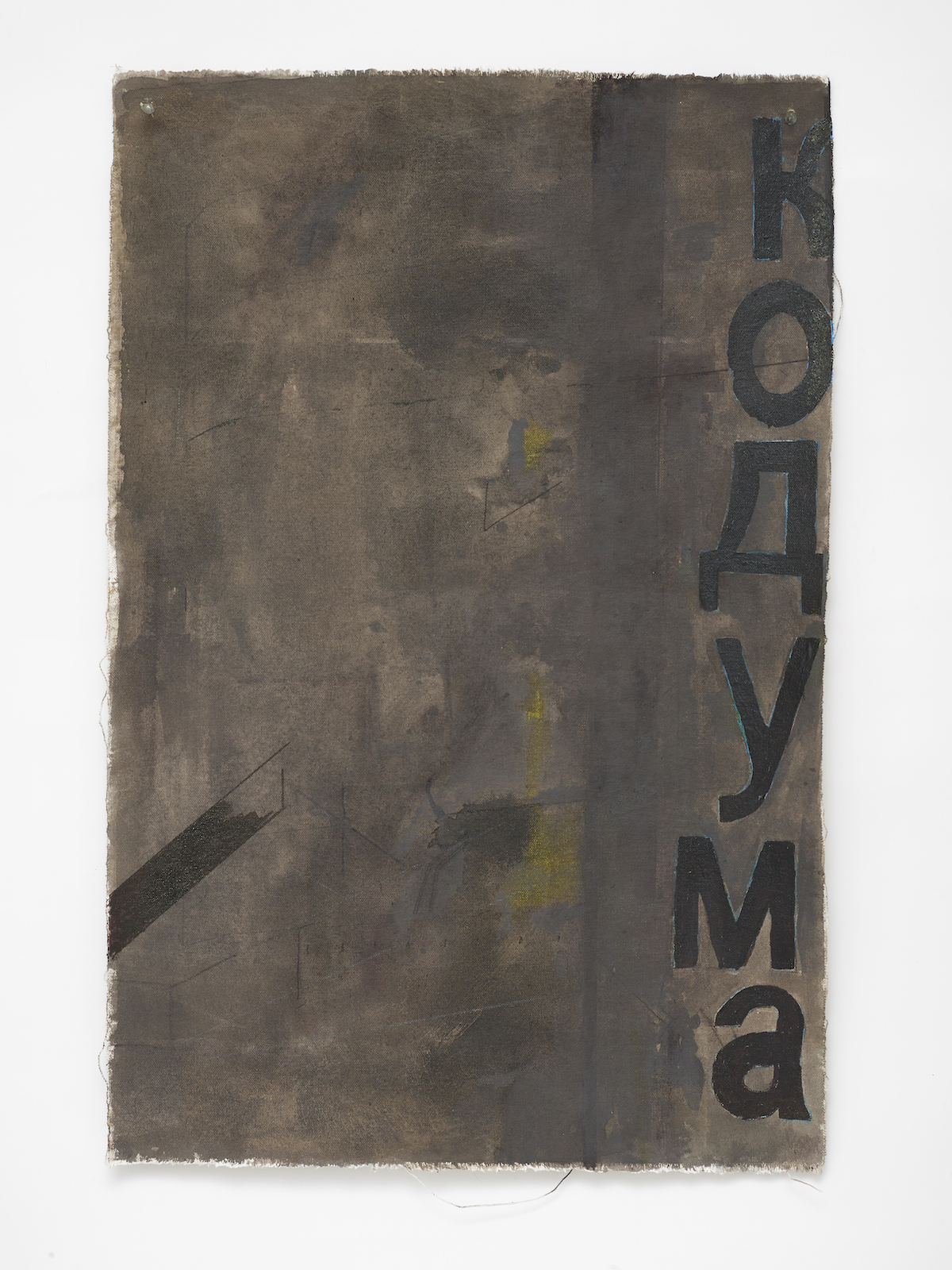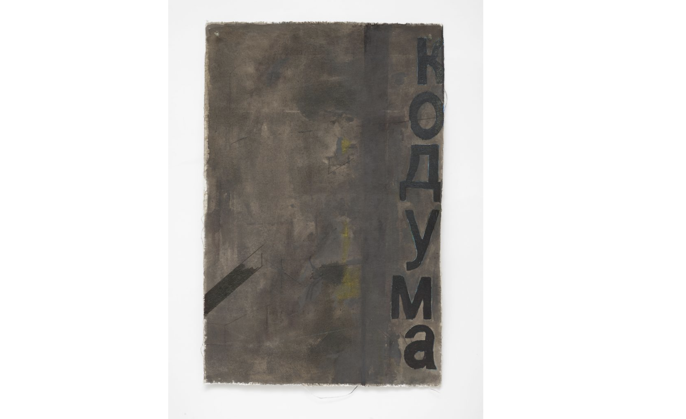 Lineup (2023) reads КОДУМА, a сyrillic transcript of the Estonian word Kodumaa, meaning homeland. ЭСТИМА КОДУМА [Estonia, Homeland] was a tag across the city of Tallinn in early 2000s, reflecting the national identity struggles of the local Russian-speaking minority under scrutiny from nationalists since the independence from the USSR. Translations that seem inelegant invoke visual signifiers used by a post-war Estonian artist Leonhard Lapin, where the Estonian for freedom [Vabadus] reads in cyrilic caps: ВАБАДУС. Symbols in Lawrence’s work play with the signified. Across the work the same letters, words and visuals change their command and what they stand for. A continuous change through time, nations, people and names, identity and ideology without necessary direction.